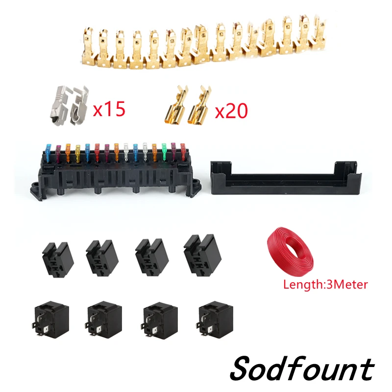 Autóipari 15-Es Dobozos Doboz Többáramú Szerelvény-Vezérlő Biztosítéktartót Relérel, Biztosítékkal, Kábelköteg-Szerelvény