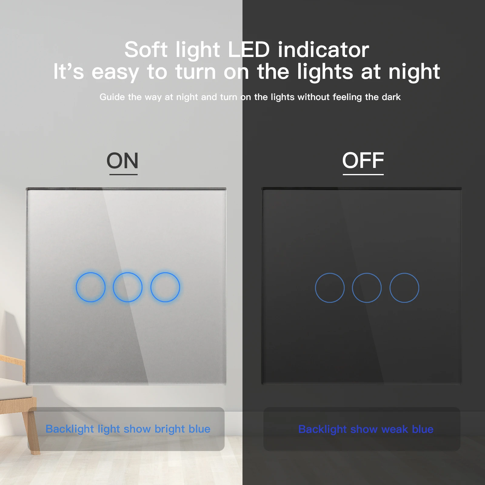 - Switch Type: Touch On/Off Switch