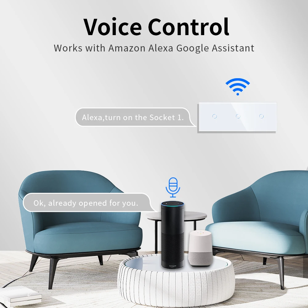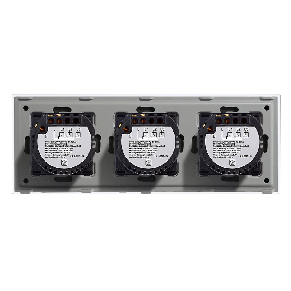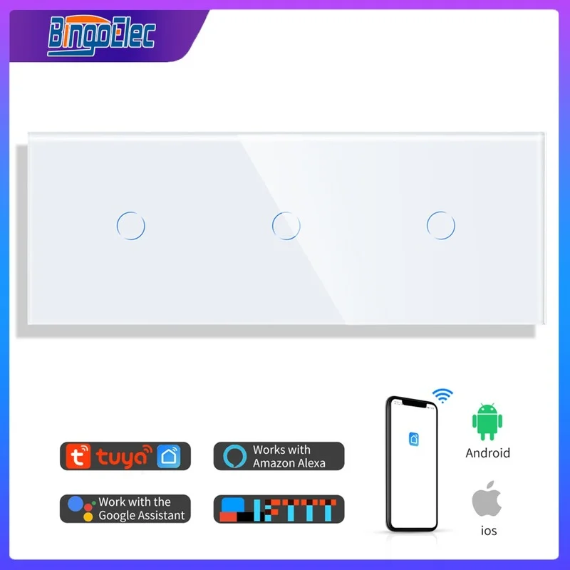 Bingoelec Wifi Control Light Kapcsoló 3Gang 1Way Triple Crystal Class Fal Touch Kapcsolók Smart Switch Tuya Semleges Vezetékkel Működik