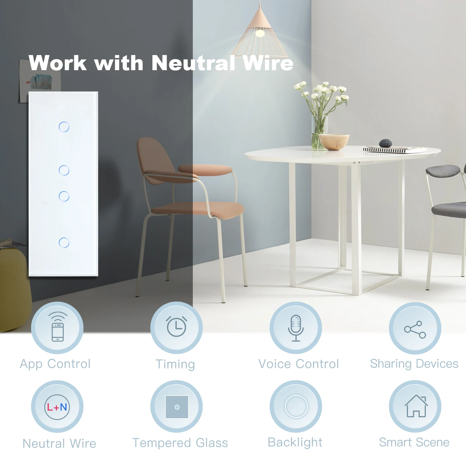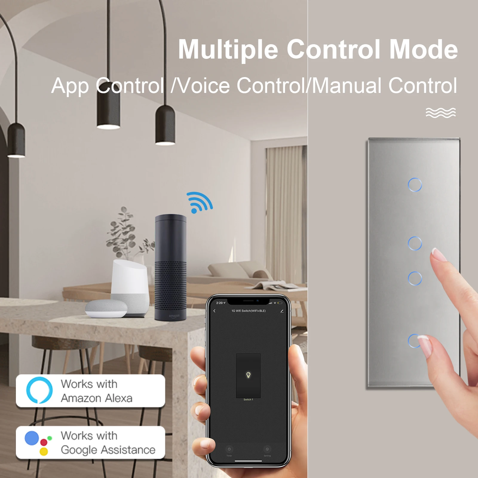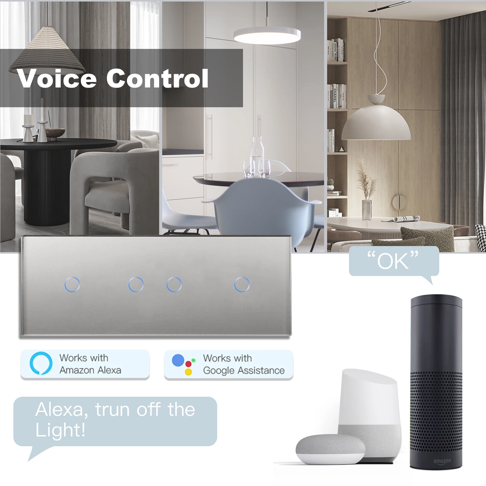Bseed 2Gang Wifi Kapcsolók Érzékelő Érintési 1Gang Fal Intelligens Kristályosztály Panel Tuya Alkalmazásvezérlés Google Alexa 10A