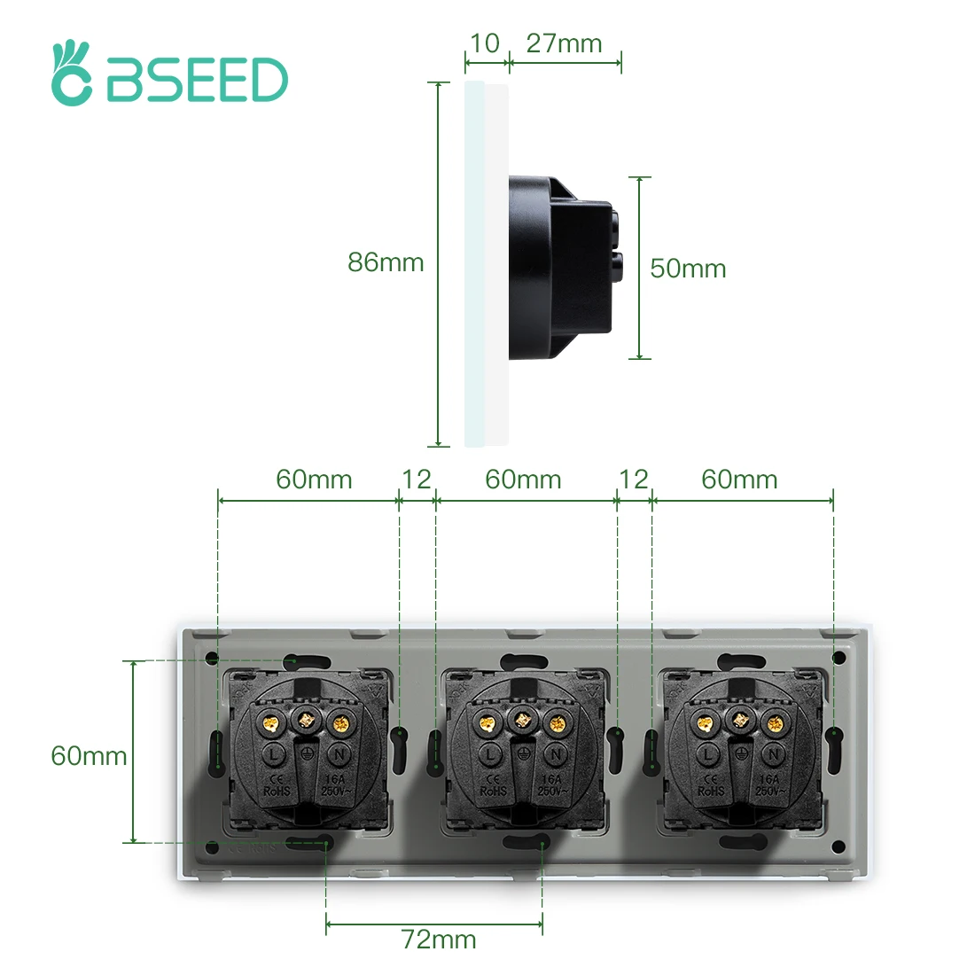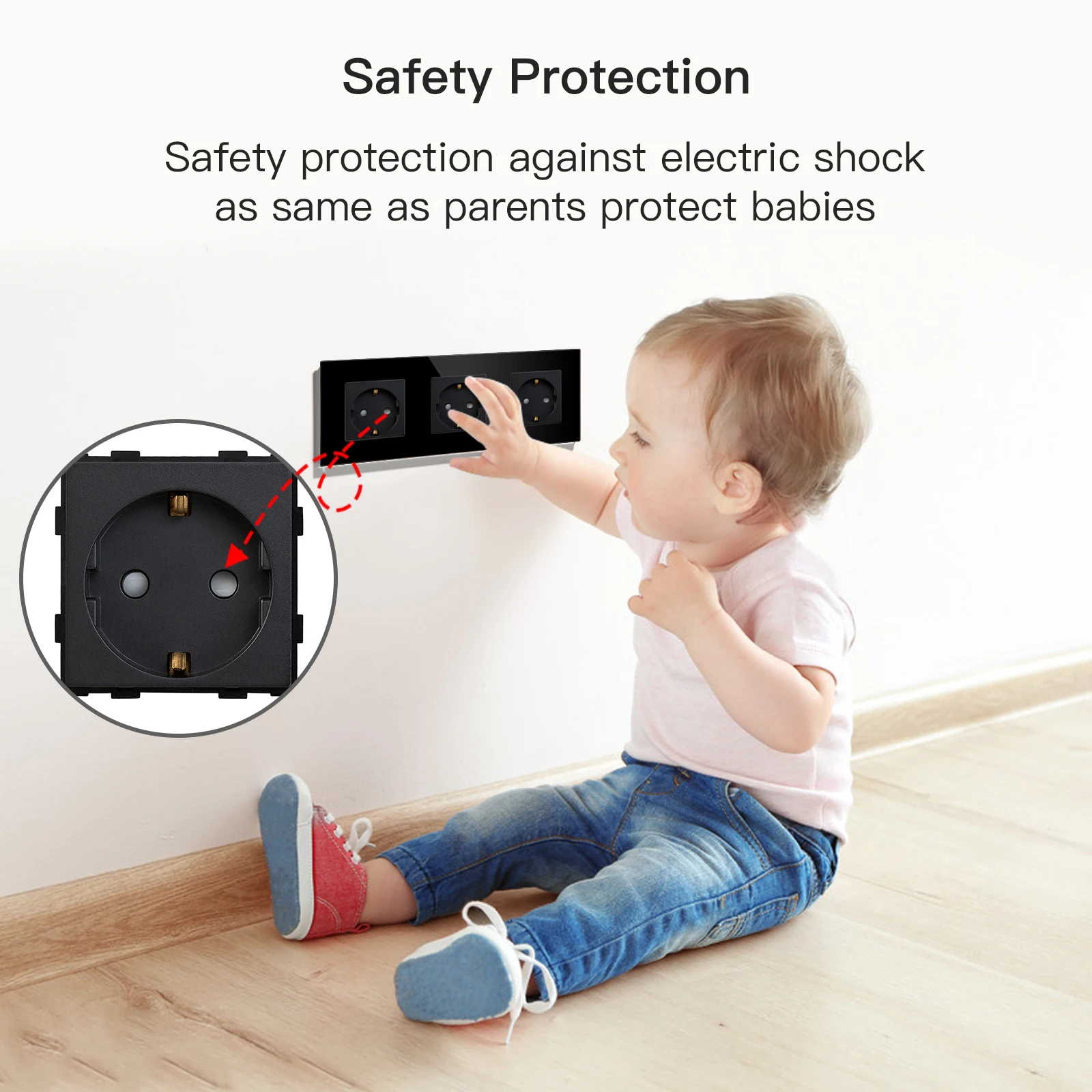 Bseed Eu Fali Aljzatok Power Outlets Fehér Fekete Arany Kristálykeret Üvegpanel Hármas Gyerekek Védelme 16A