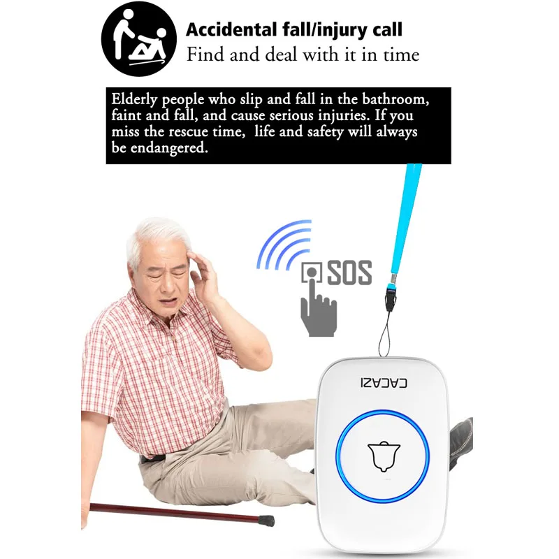 Cacazi -Személyhívó Gondozó Vezeték Nélküli Sos Hívásgomb Kórházi Ápoló Hívás Riasztás Beteg Súgó Rendszer Otthoni Idős Terhes Nők Számára
