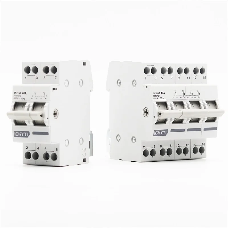 Chyt 2P 4P Din Rail Ac 230V 400V 40A 63A Kettős Teljesítményű Kézi Átviteli Kapcsoló Reteszelői Megszakító Vasúti Típusú Mts