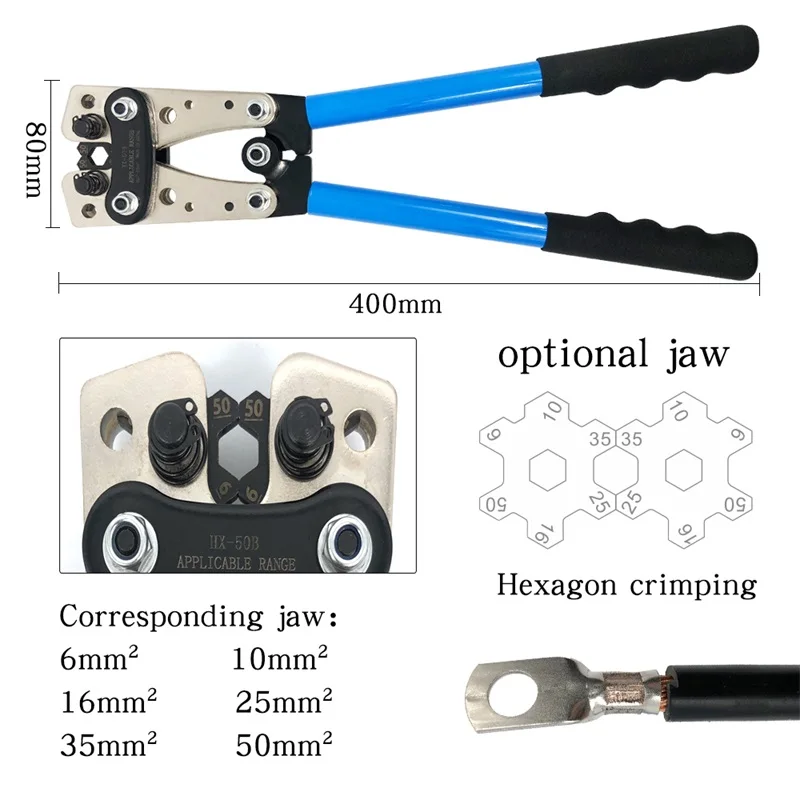 Chyt Hx -50B 6,0 – 50 Mm2 Kábel Krimping Szerszámkészlet Rézgyűrűs Terminál Fogógép Autóipari Akkumulátor Csatlakozó 60/100Db Doboz