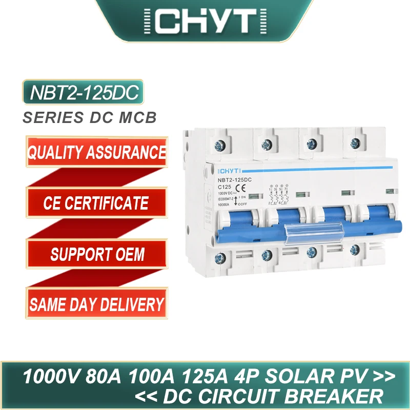 Chyt Nbt2-125Dc 1P Pv Din Rain Dc 300V 100A 125A 10Ka C Curke Solar Kapcsoló Mini Cirvány Mcb