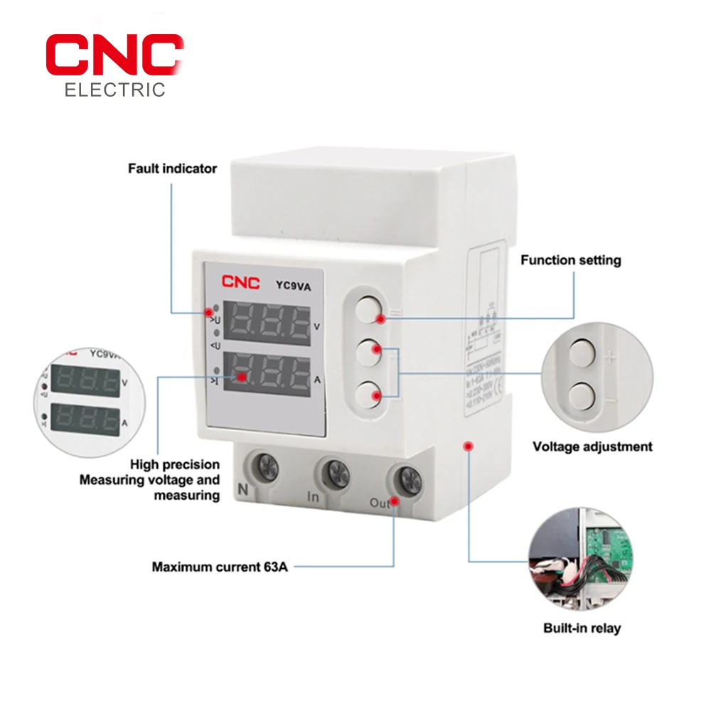 Cnc Yc9Va Digitális Feszültség És Aktuális Kijelzővédő 230 V Din Sín Kettős Állítható Feszültségvédelem Alatt