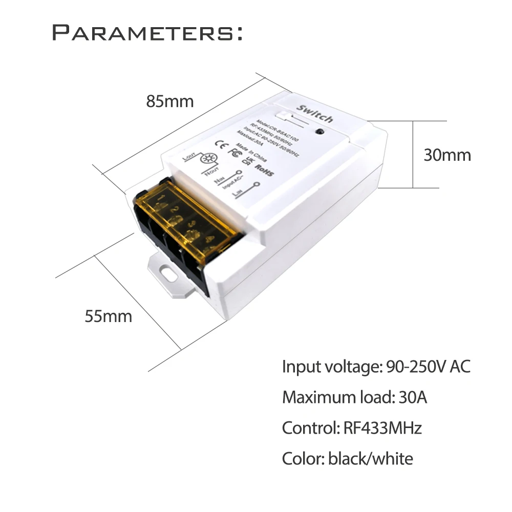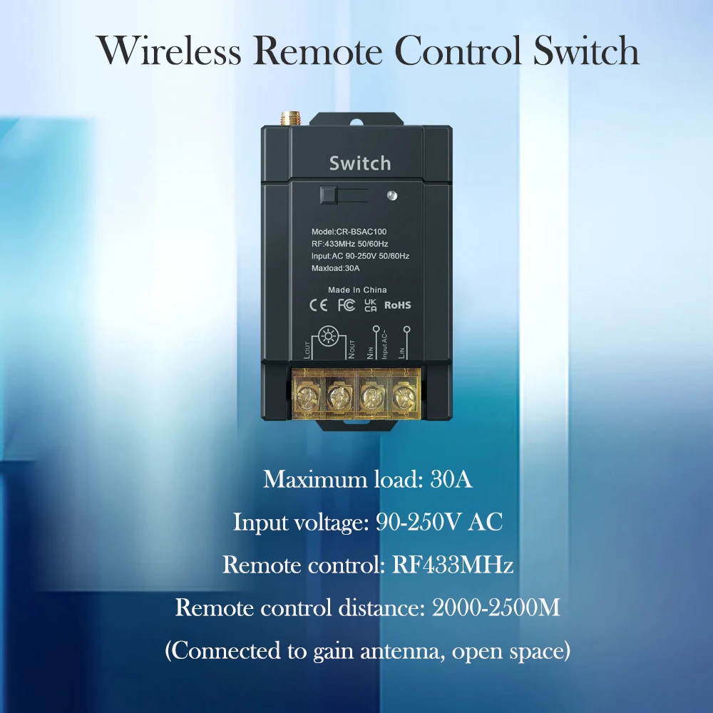 Colorock Vezeték Nélküli Kapcsoló Rf433Mhz Távirányító 2000-2500M 30A 90-250V Ac Nagy Terhelés Széles Feszültségű Többcélú