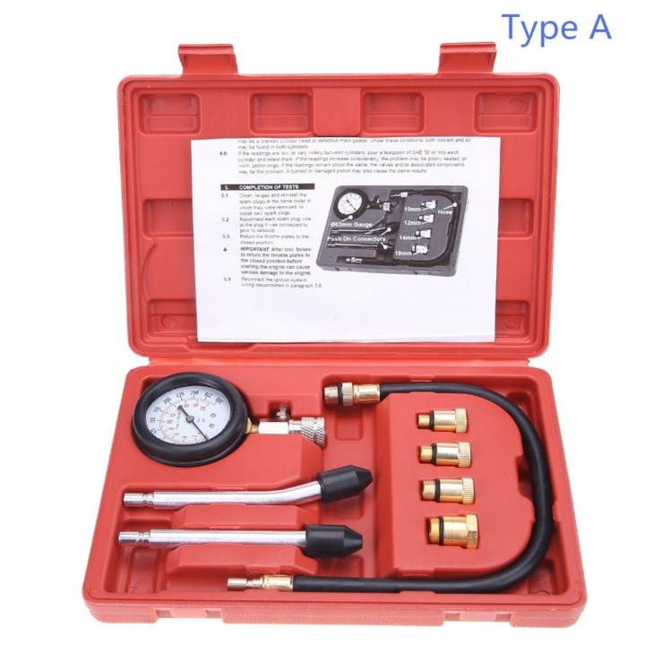 Compression Tester Nyomásmérő Tester Kit Motor Auto Car Benzines Motor Hengerfej Motorkerékpár Nyomásmérő Adapterrel