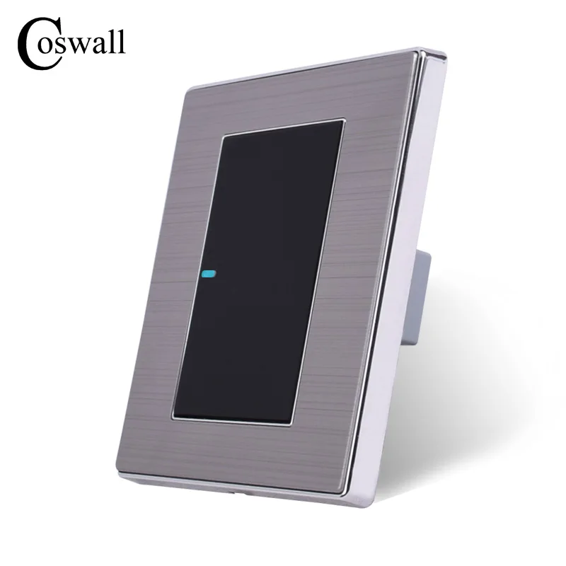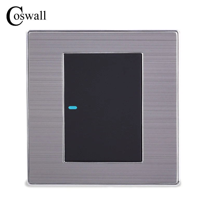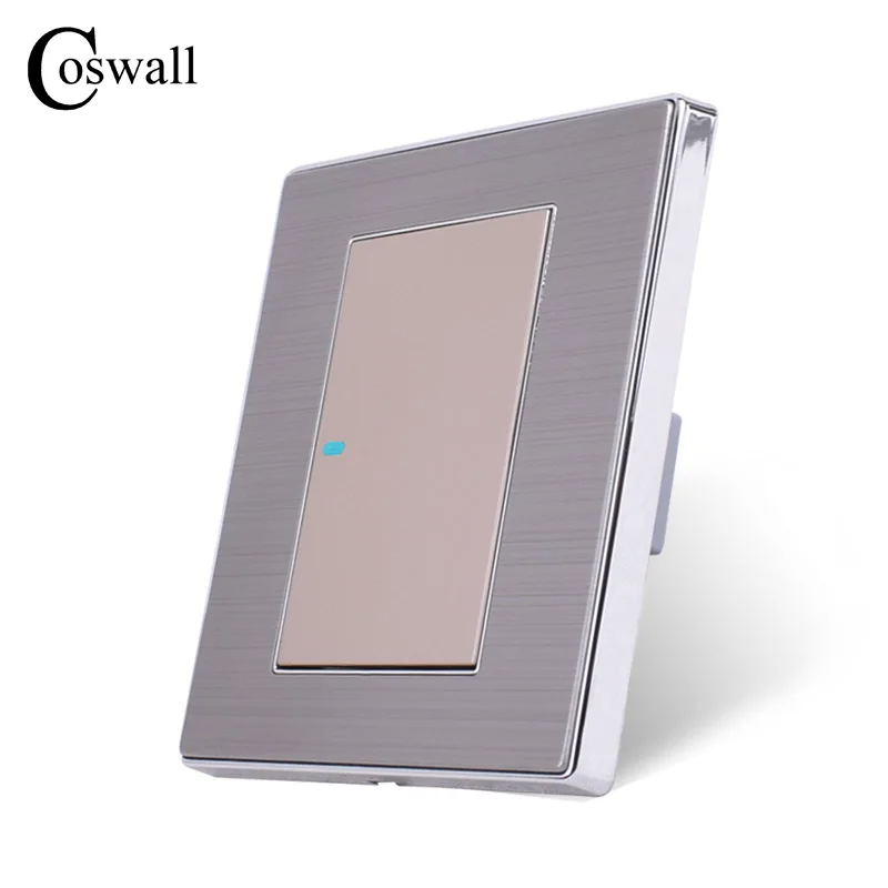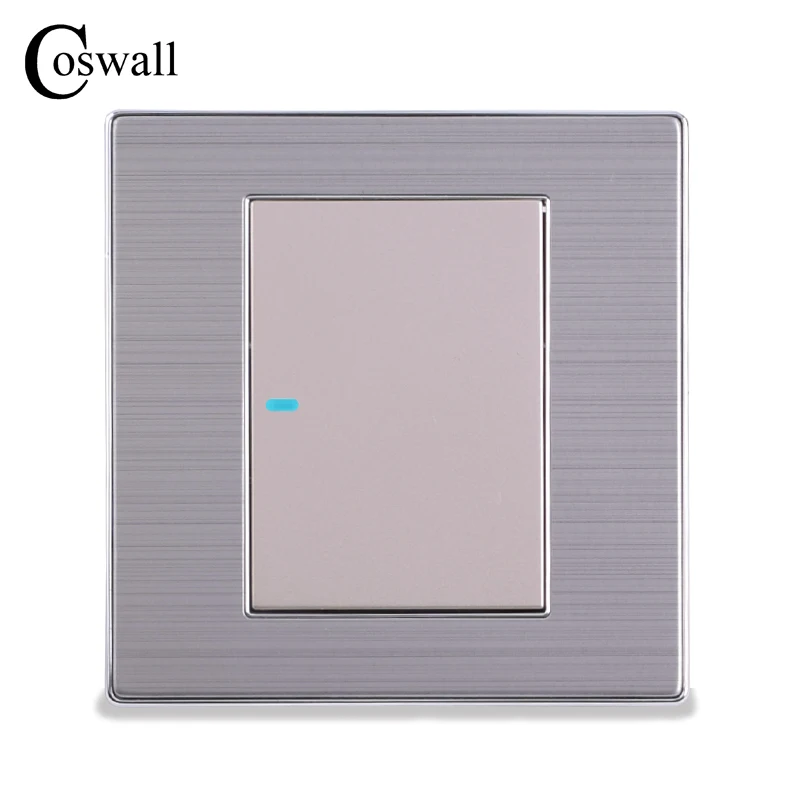 Coswall 1 Gang 2 Wak Luxus Led -Es Kapcsoló Be- / Kikapcsoló Fal Megszakító Szálcsiszolt Ezüst Panel 10A Ac 110 ~ 250 V