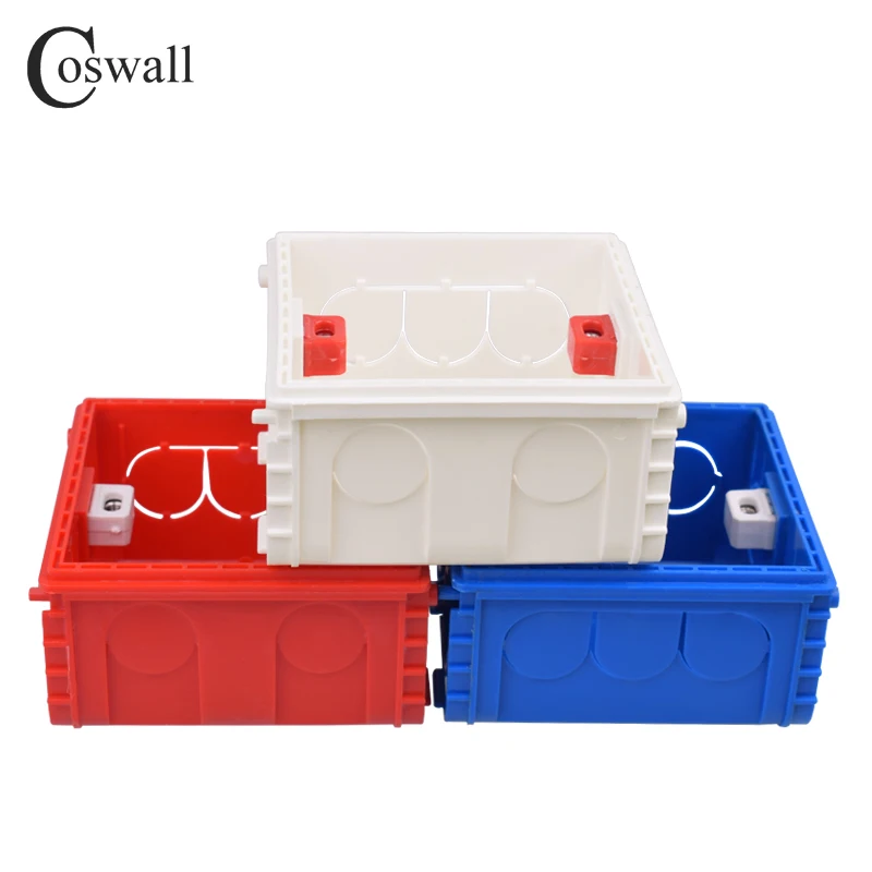 Coswall Állítható Rögzítődoboz Belső Kazetta 86 Mm*85 Mm*50 Mm Típusú Kapcsolóhoz És Aljzathoz Fehér Piros Kék Huzalozó Doboz