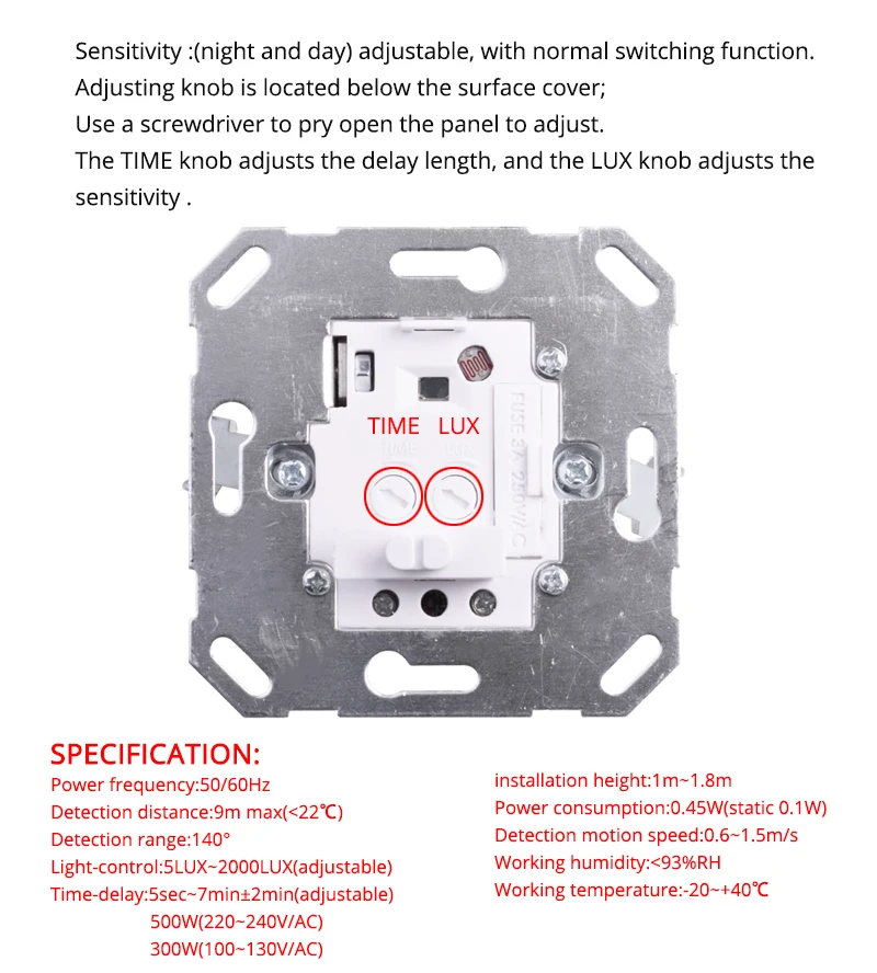 Coswall Eu Standard Pir Human Body Motion Sensor Fal Kapcsoló Állítható Késleltetés És Érzékenység Ac 110V-240V Infravörös