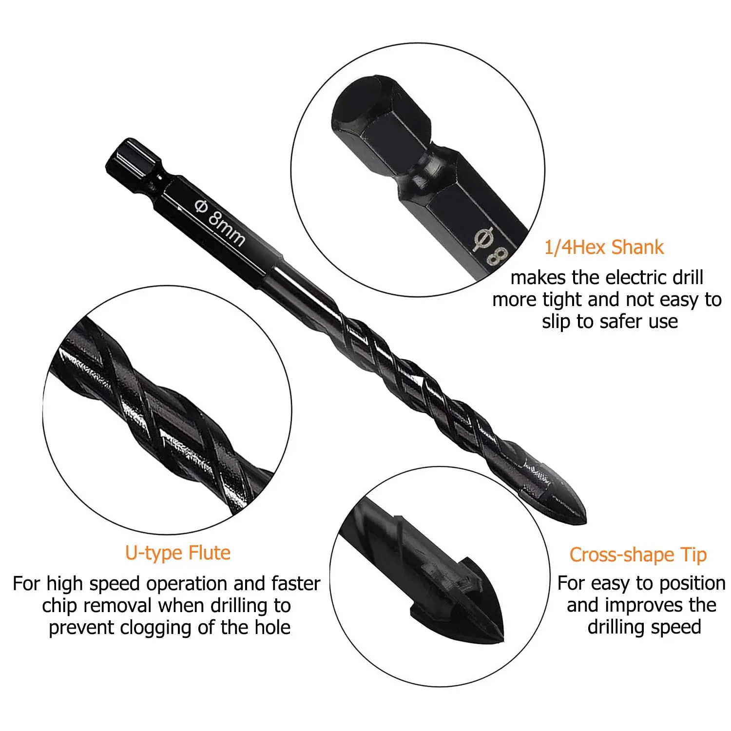 Cross Hex Csempe Fúró Darabok Betét Kemény Ötvözet Háromszög Kőüveg Kerámia Betonfúró -Bithosszabbító Lyuk Nyitó Univerzális Szerszám