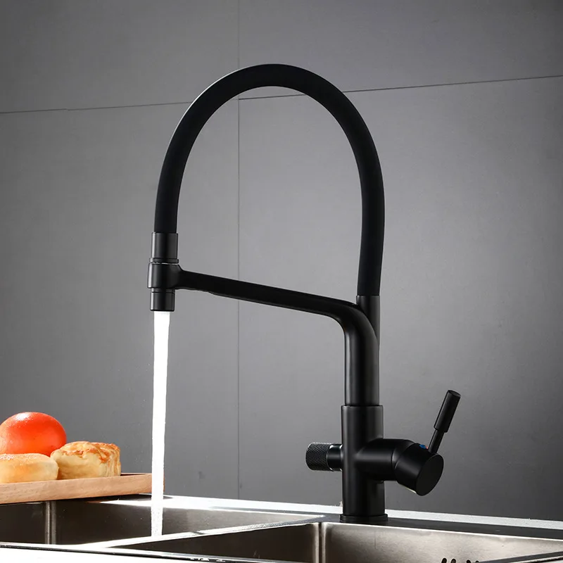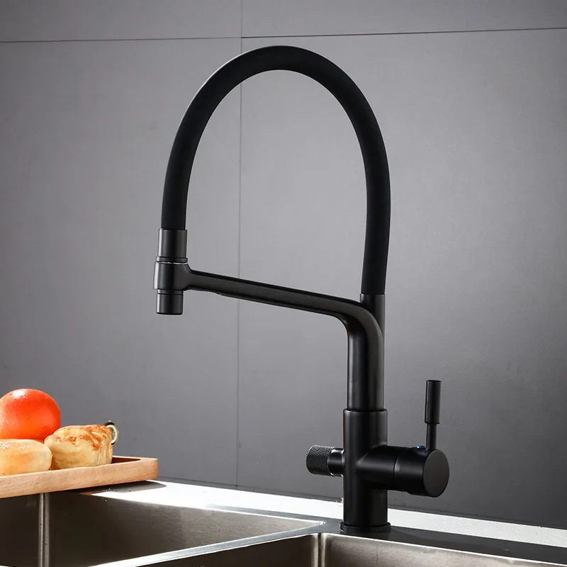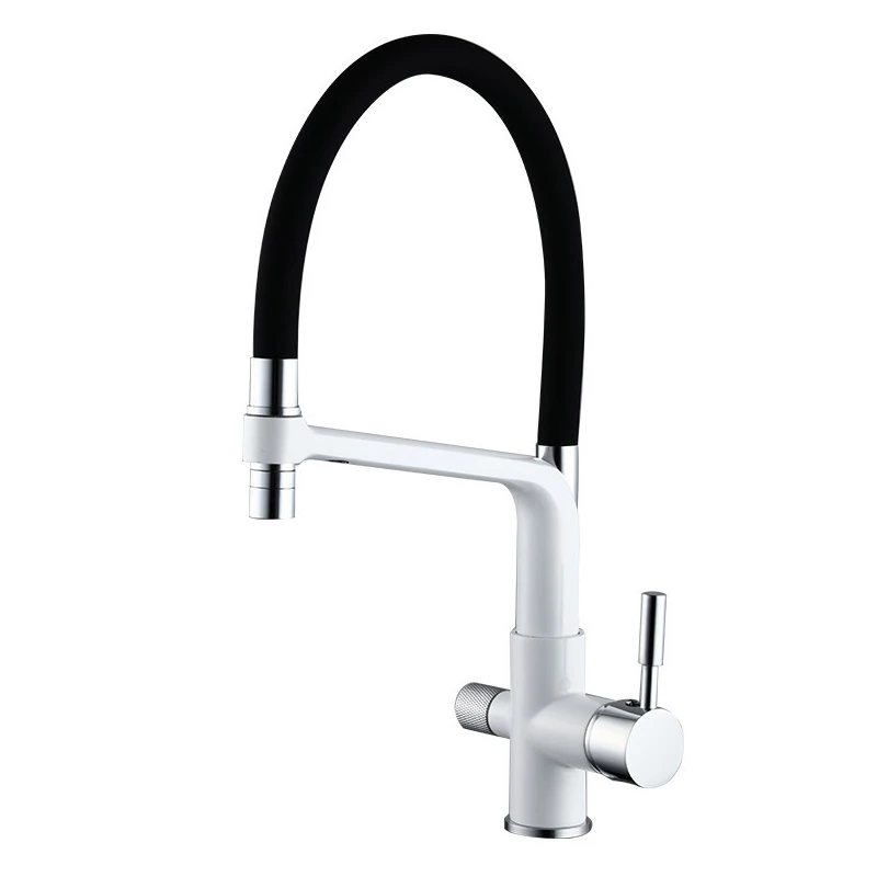 Csúcskategóriás Sárgaréz Fehér Lakk Konyhai Mosogató Csaptelep Húzza Le Két Fogantyú 3 Utas Egészséges Ivóvízcsap-Keverő W3059