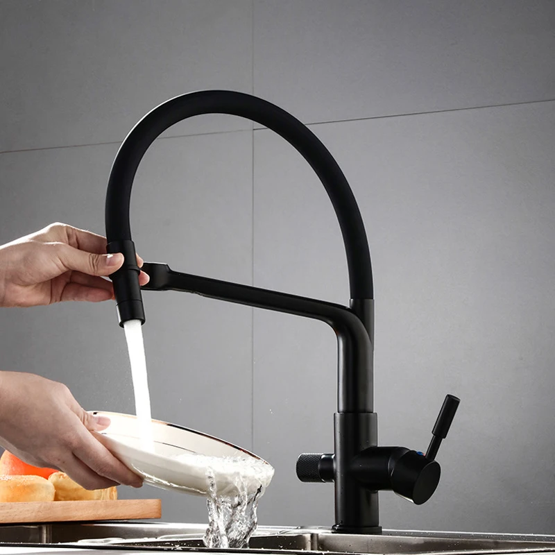 High-end Brass White Lacquer Kitchen Sink Faucet Pull Down Two Handle 3-way Kitchen Healthy Drinking Water Tap Mixer W3059