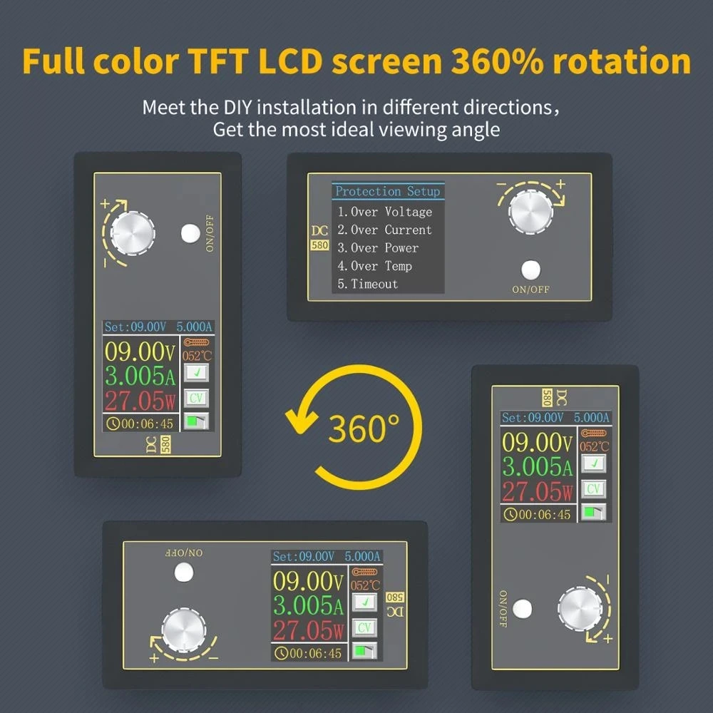 Dc Buck Converter Cc Cv Power Modul 1,8-32V 5A Állítható Szabályozott Tápegység Voltmérő Ampermérő Cnc Színes Képernyő 80W