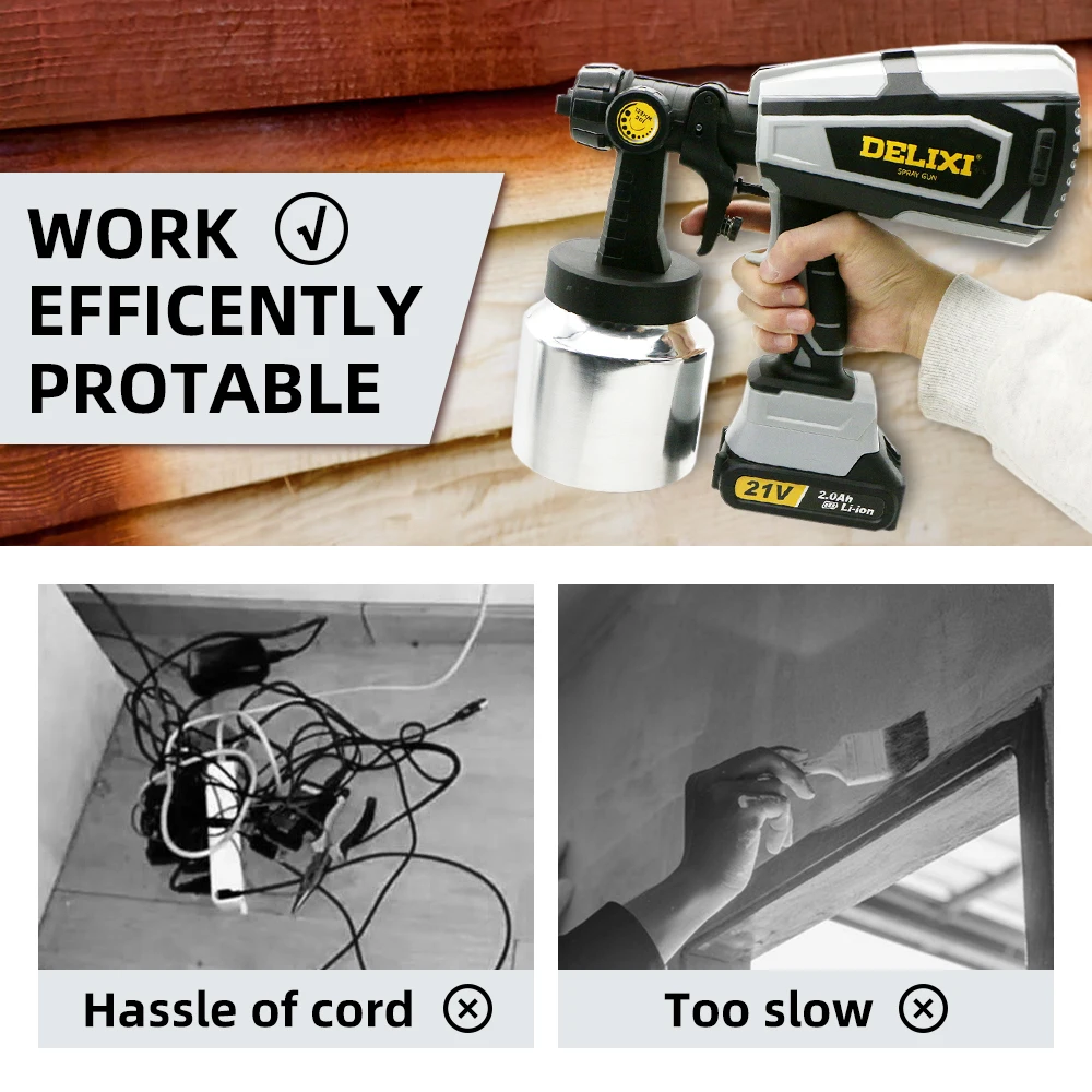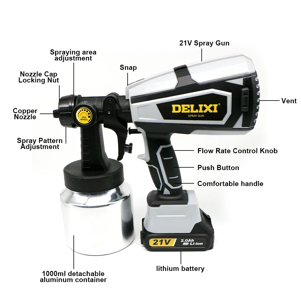 Delixi Új 21 V Dc Li-Ion Akkumulátor 1000 Ml-Es Kapacitású Szerszám Hvlp Elektromos Vezeték Nélküli Permetezésű Pisztolypermetező Otthoni És Kültéri Permetezőgép