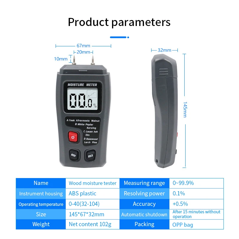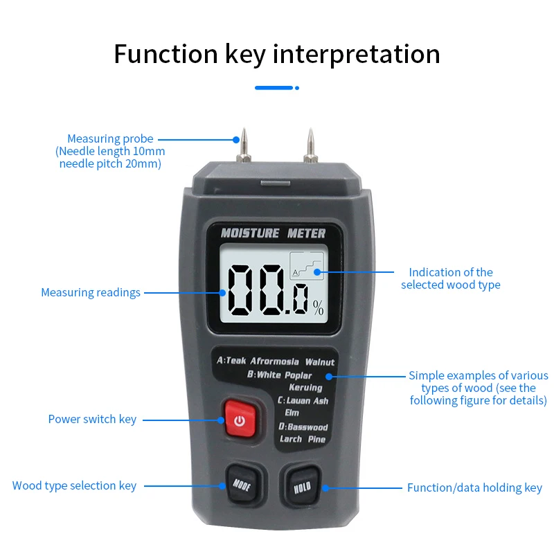 Digitális Fa Higrómer Professzionális Nedvességmérő Multifunkcionális Fűrészáru -Teszter Kézi Fafa Páratartalom Tesztelő