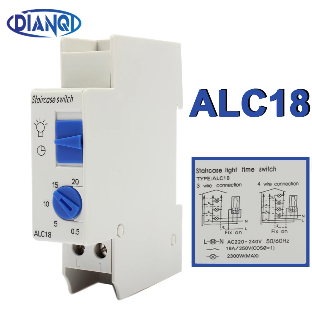 Din Sín Lépcsőn Világítás Időzítő Kapcsoló Relé 220Vac 16A A Folyosó Megvilágításához Mechanikus Alc18