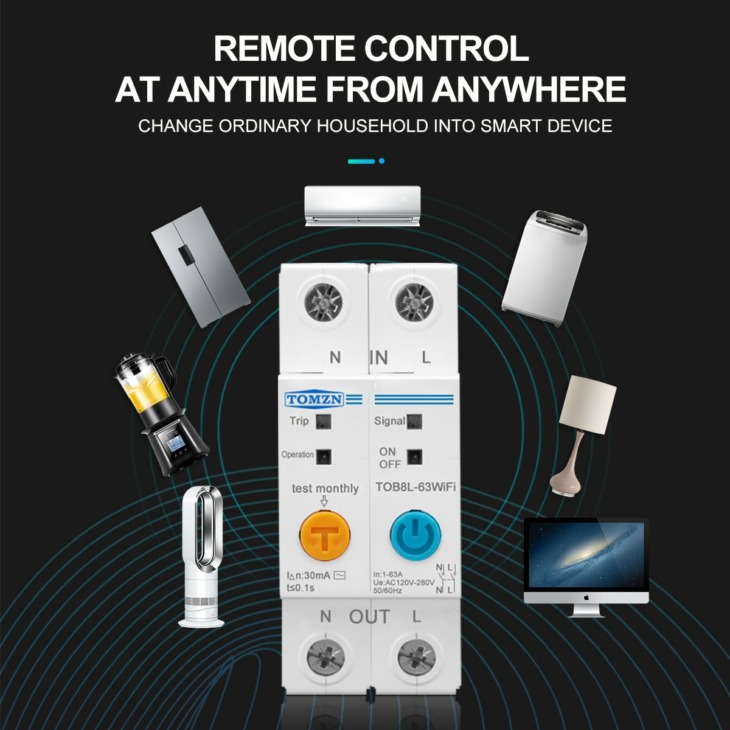 Egyfázisú Wifi Smart Energy Meter Kwh Metering Monitoring Megszakító Időzítő Relé A Szivárgás Védelem 63A Ewelink