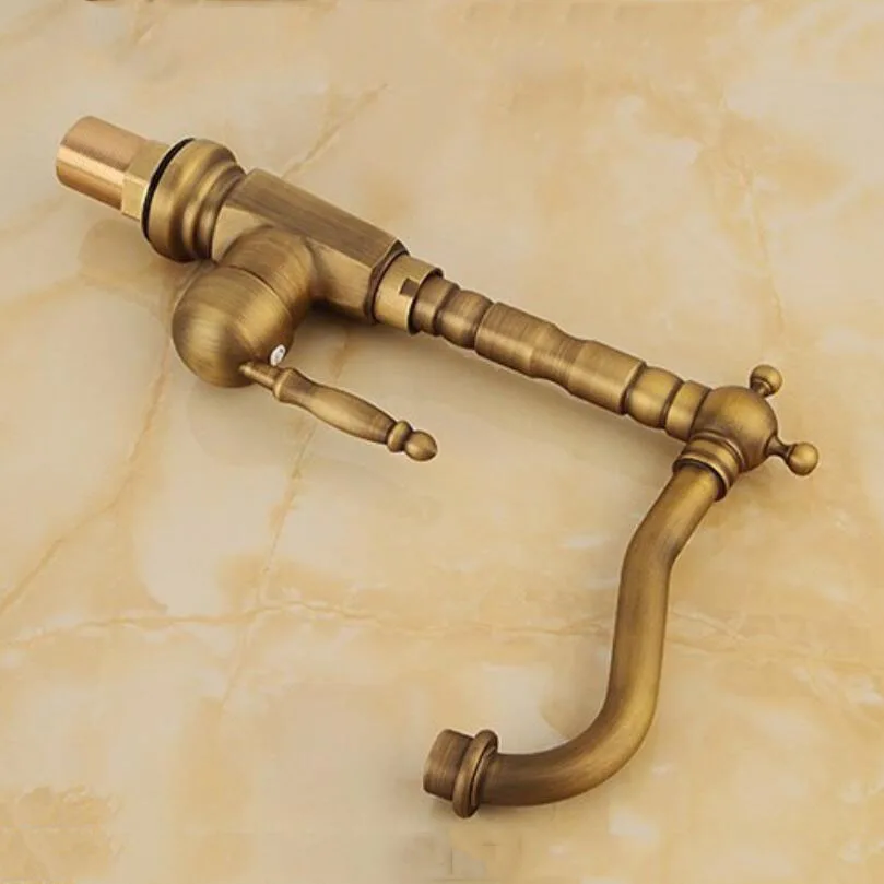 Európai Stílusú Sárgaréz Retro Szálcsiszolt Csaptelep Konyha Mosogató Meleg És Hidegvíz-Keverő Tap 360 ° Forgó Fürdőszoba Mosdó Bibcock