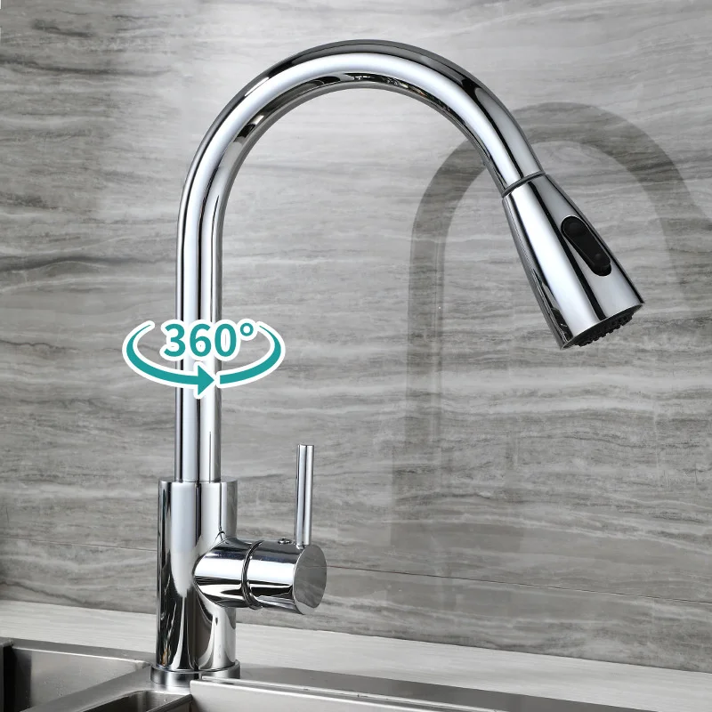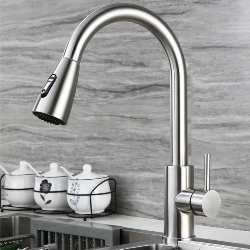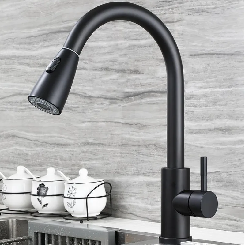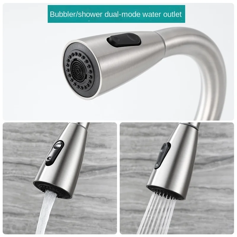 Fekete Ezüst Konyhai Csaptelep 2 Funkció Patak Permetezőgép 304 Rozsdamentes Acél Egy Fogantyú Húzza Ki A Meleg Hideg Vízkeverő Csapok Csapját