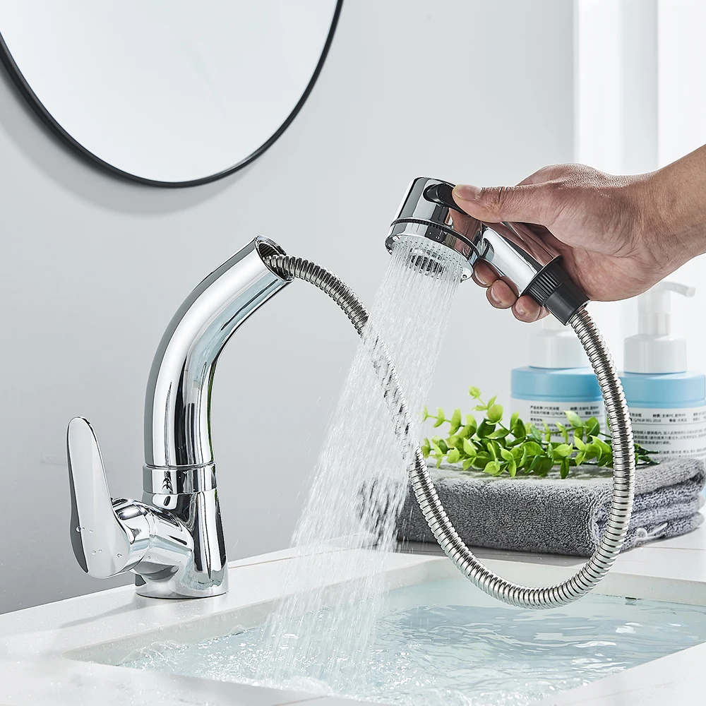 Fekete Fürdőszoba -Medence Csaptelep Húzza Ki A Kifolyót Egyfogantyú Meleg Hideg Keverőcsapok Felfelé És Lefelé Konyhai