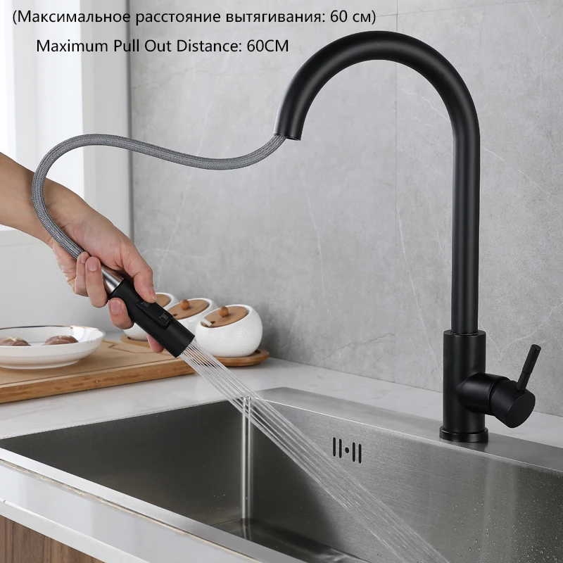Fekete Húzza Ki Az Érzékelő Konyhai Csaptelep Intelligens Indukciós Keverődaru Touch/Non Touch Control Tornira De Cozinha