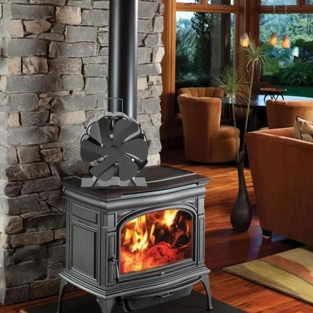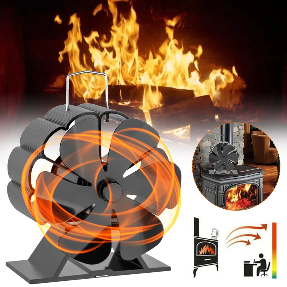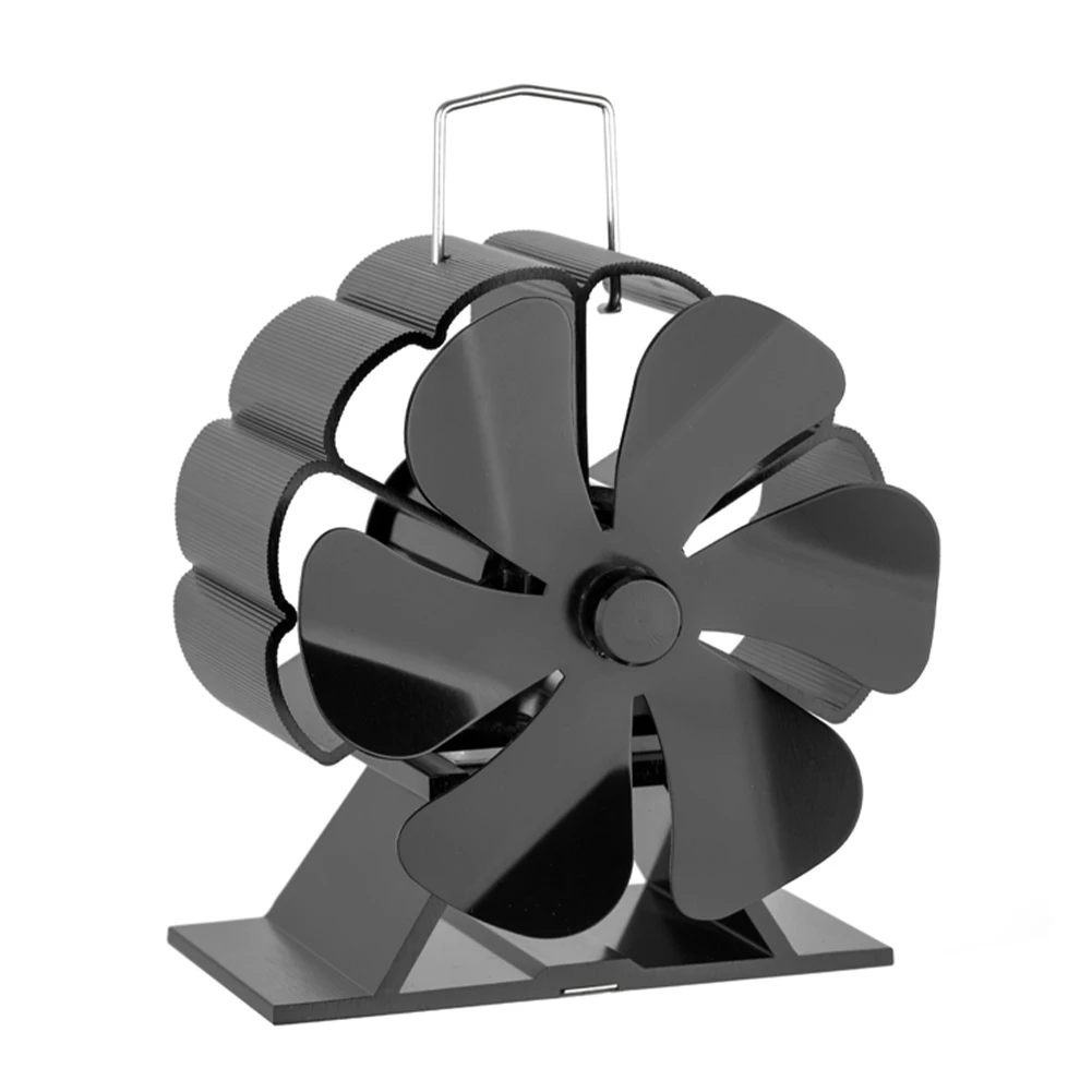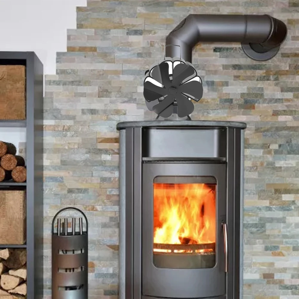Fekete Kandalló 6 Penge Hőhatású Kályha Ventilátor Csendes Művelet Környezetbarát Üzemanyag-Hatékony Fa Fatörzs Számára