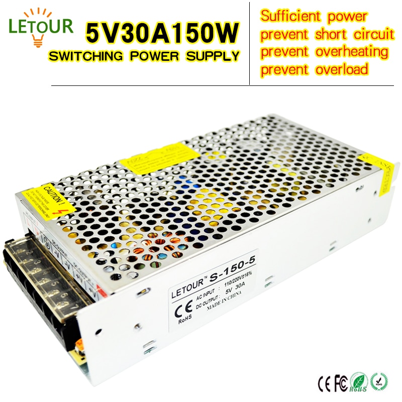 Filmkészlet Termosztáttal, Bilincsekkel, Pasztával, Szalaggal Led Tápegység 5V 30A Ac 96V-240V Átalakító Adapter Dc 5V30A 150W Tápegység Led Világításhoz, Led Szalag, Cctv, Ce / Fcc Cert