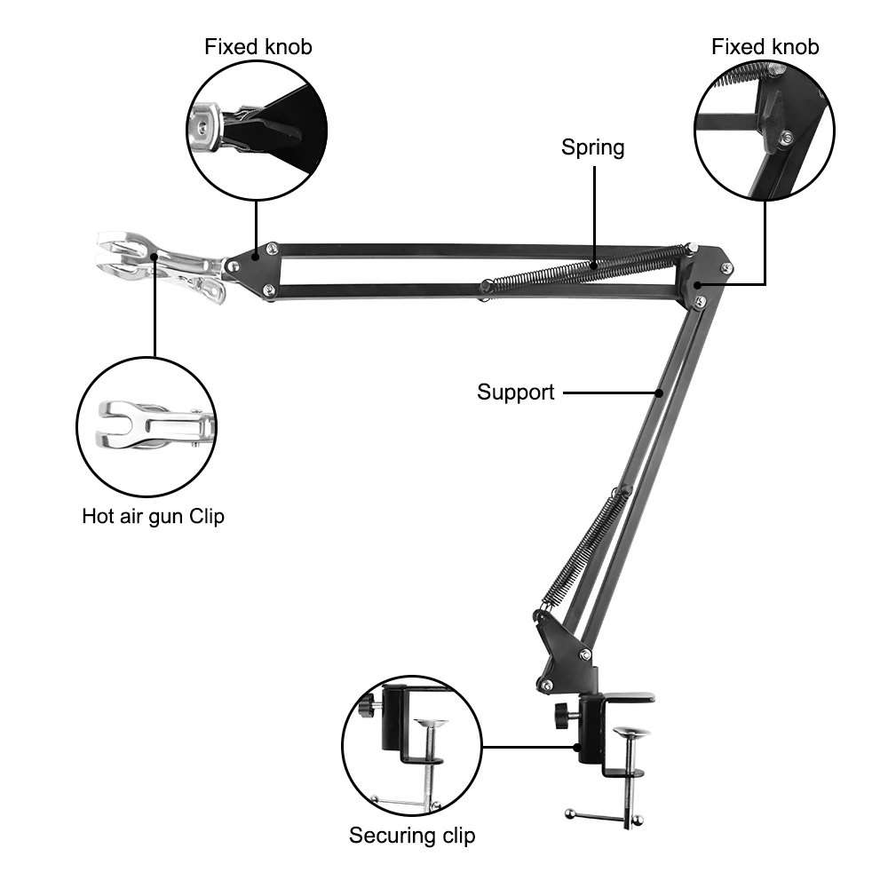 Forró Levegős Pisztoly Konzol Asztali Összecsukható Stabil Tartó Hosszú Kar 360 Fokos Forgó Hőpisztollyal 3 Tengely Univerzális Szerszámok