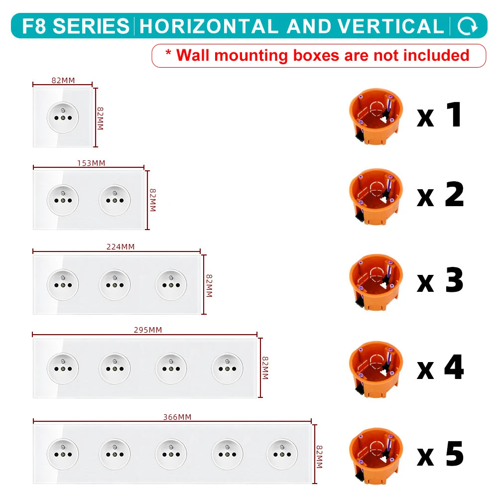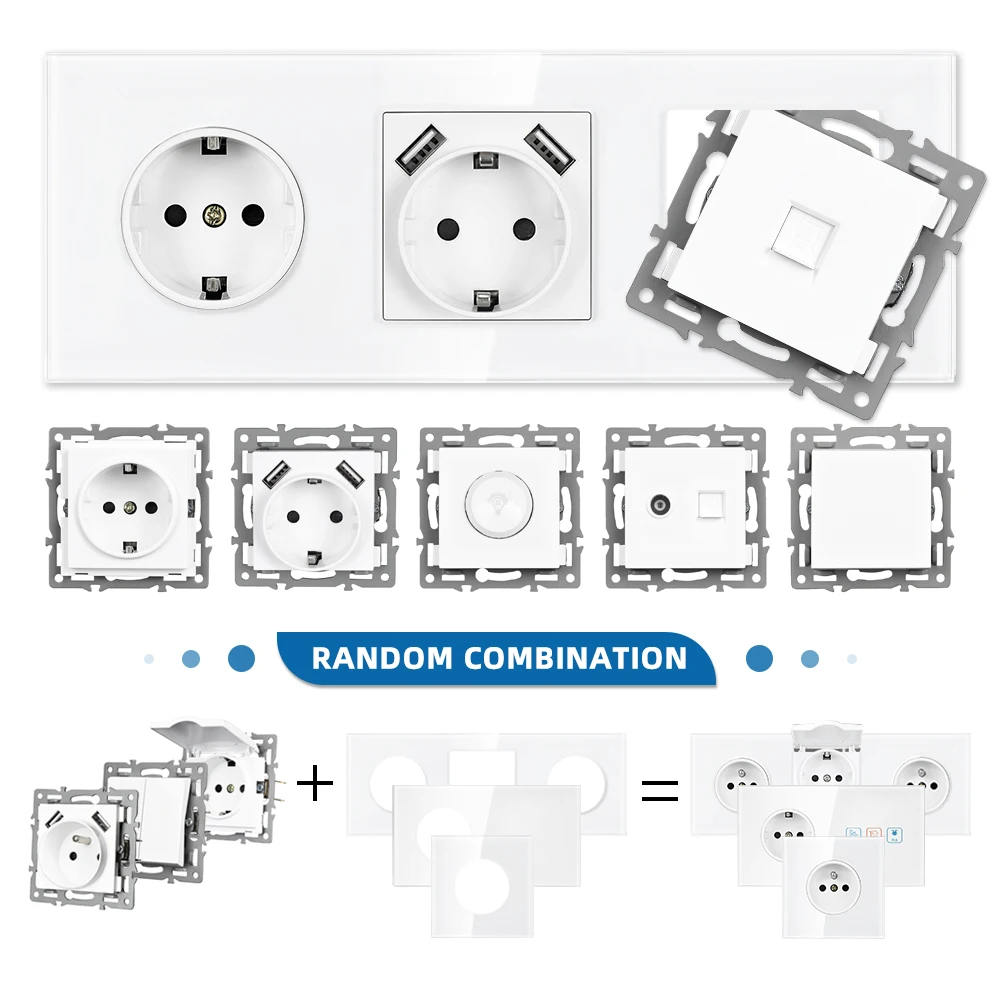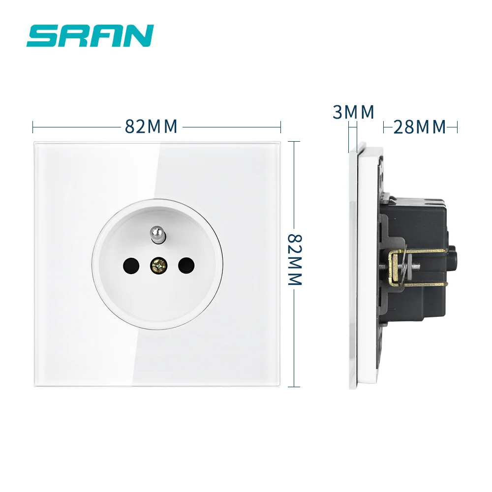Francia Teljesítményalkalmazás, 16A Eu Szabványos Elektromos Kimenet Fehér Teljes Tükör Kristályüveg Panel Fali Aljzat Franciaország Sran