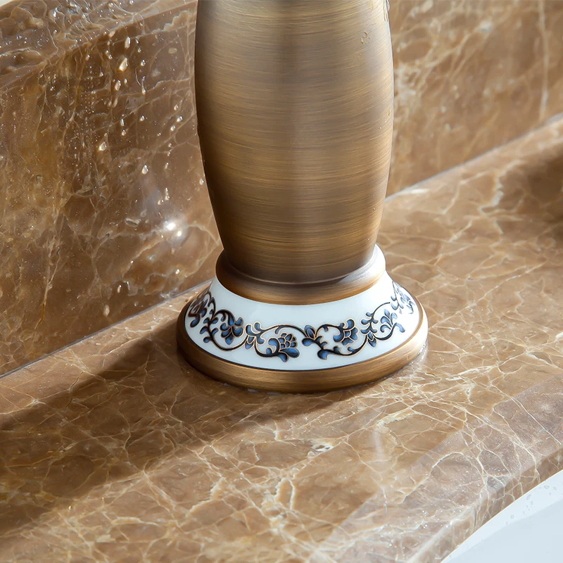 Fürdőszoba Csaptelep Antik Bronz Medence Mosogató Szilárd Sárgaréz Szüret Stílusú Egyfogantyú Vízkeverő Csapok Fürdő Daru Dekoratív Kerámia