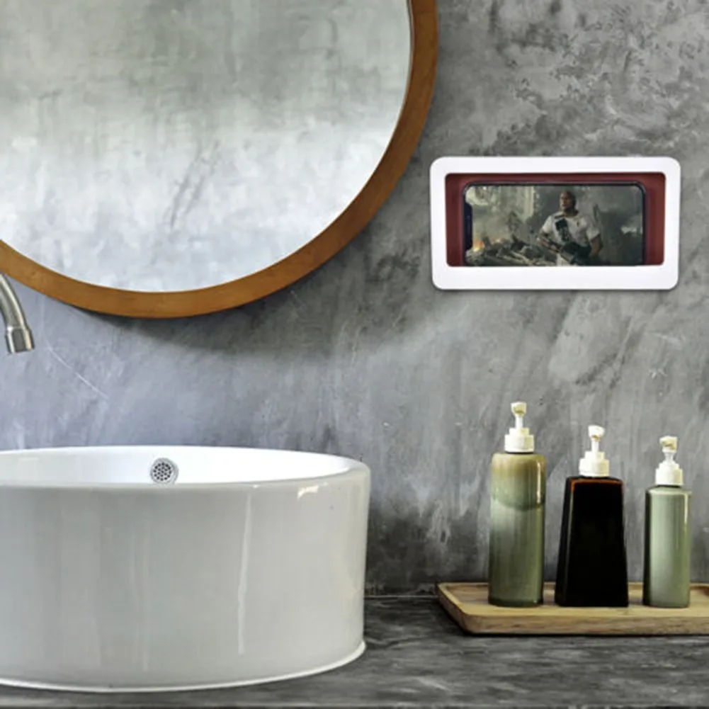 Fürdőszoba Vízálló Fali Telefon Tok Állvány Doboz Érintőképernyős Zuhany Tároló Falra Szerelve Az Összes Fedett Mobiltelefon -Polcok