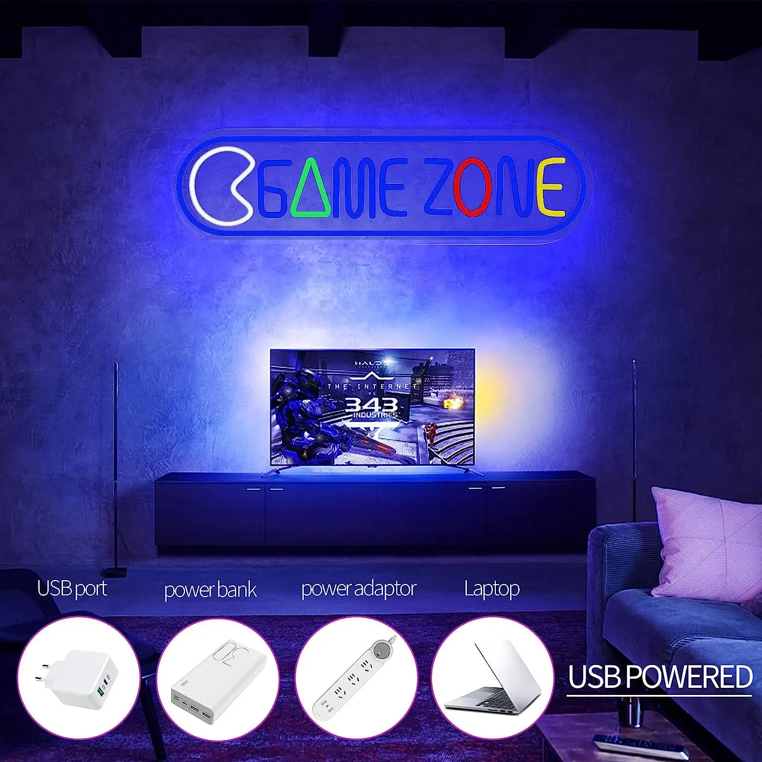 Game Zone Neon Sign Usb Powered A Szoba Dekorációhoz, Led Fényű Dimmable Éjszakai Fény Gamer Room Man Barlang Fali Művészethez