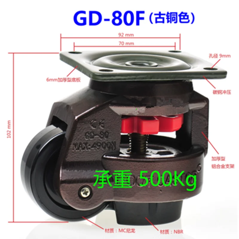 Gd-40F/60F/80F, 500 Kg Terhelés, Szint Beállító Kerék, Lapos Támogatás, Automata Nagy Felszerelésekhez, Lndustrial Görgők