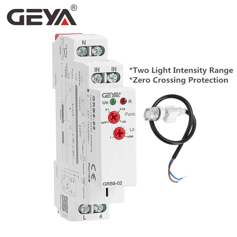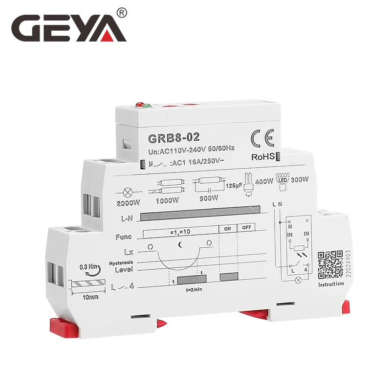 Geya Grb8-01/02 Twilight Switch Ac110V-240V Street Light Sensor Din Vasúti Moduláris Relé 16A Automatikus Kapcsoló