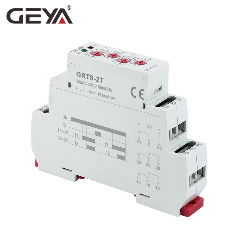 Geya Grt8-2T Kettős Késleltetés Az Időzítő Relénél Ac230V Vagy Ac/Dc12V-240V Dpdt Relay Din Sín Típusú Késleltetési Relé