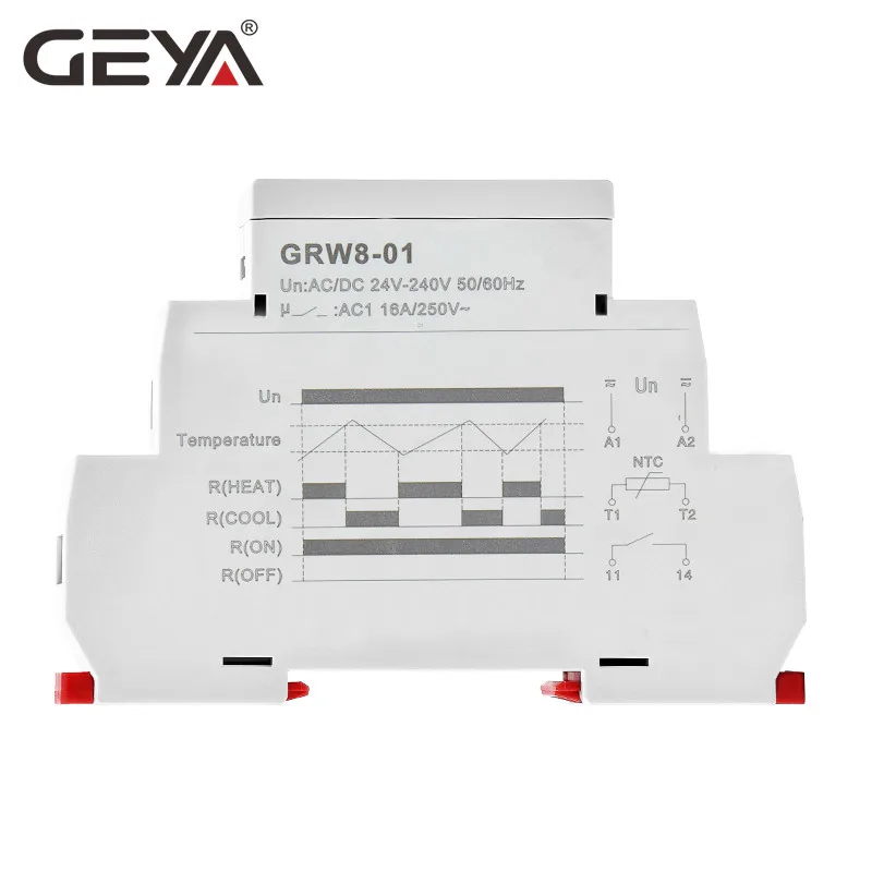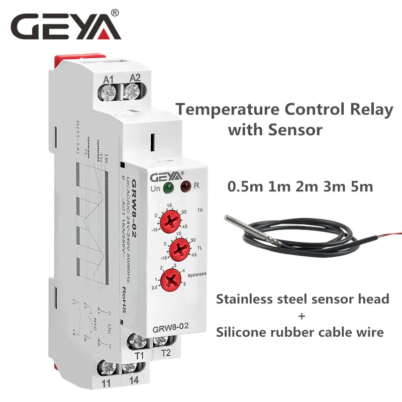 Geya Grw8-01/02 Din Sínhőmérséklet-Szabályozó Relé Ac Dc 24V-240V Széles Tartományú Feszültség Ntc Vízálló Érzékelővel