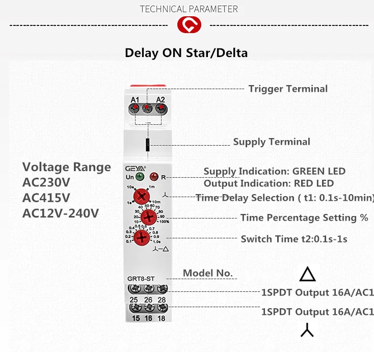 Geya Késleltetés A Star Delta Vezérlő Relé 16A Lágy Indító Motorvédő Ac230V, Ac415V, Ac/Dc1 Számára