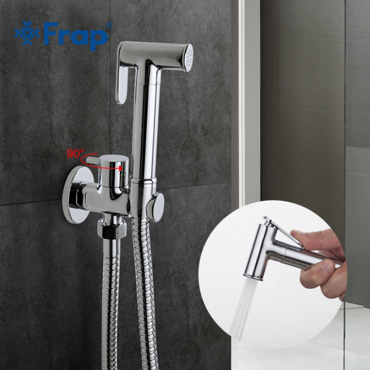 Házfedéllel 1 Készlet Szilárd Sárgaréz Egyhideg Vízzel Sarokszelep Bidé Funkció Hengeres Kézi Zuhanycsap 90 Fokozatkapcsoló F7501