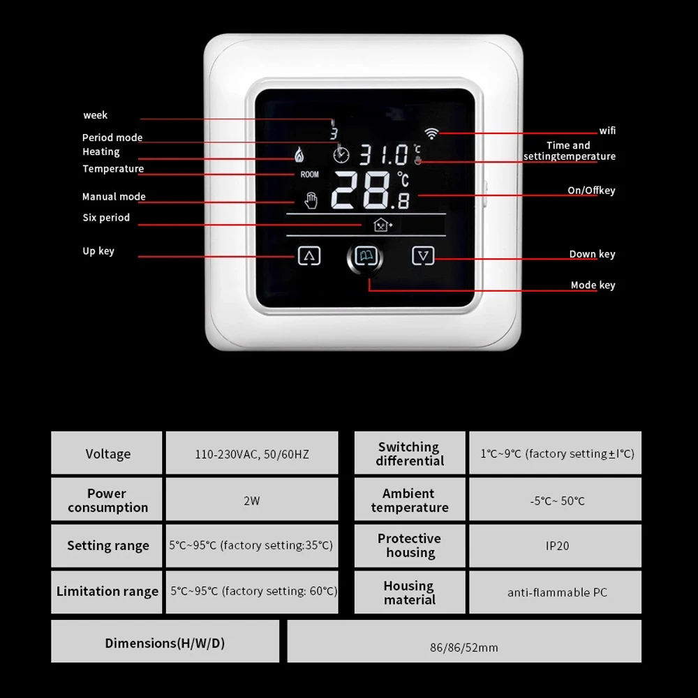 Háztartási Programozható Termosztát Időjárási Állomás Wifi Elektromos Fűtéssel Lcd Érintőképernyővel