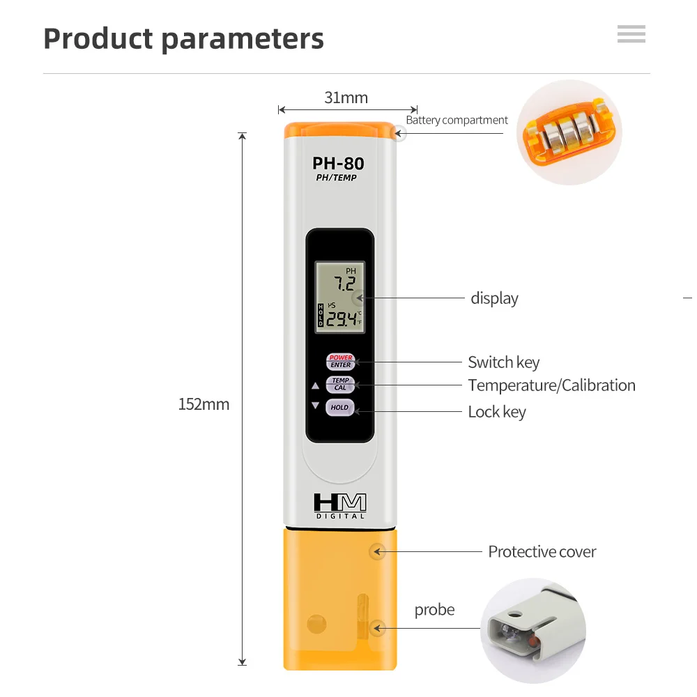Hm Digitális Ph-80 Vízálló Ph-Hőmérséklet-Mérő Hydro Automatikus Kalibrációs Funkcióval Vízminőségi Ph-Tesztelő