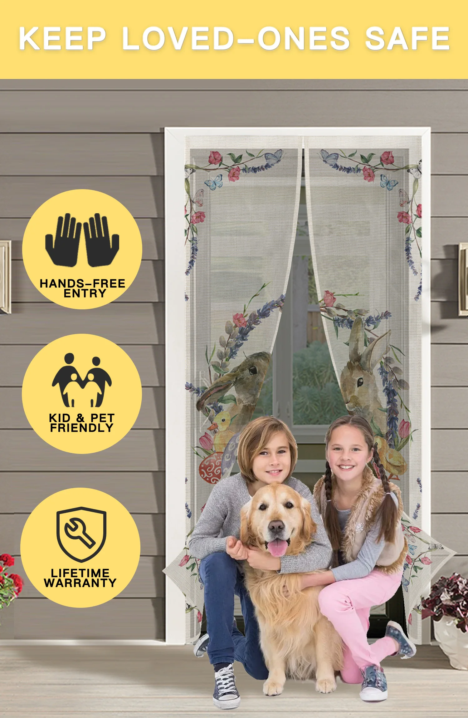 Húsvéti Nyuszi Tojásvirág Konyhai Függöny Mágneses Szúnyog Hálófüggönyök Nyári Hálószoba Rovarok Ajtó