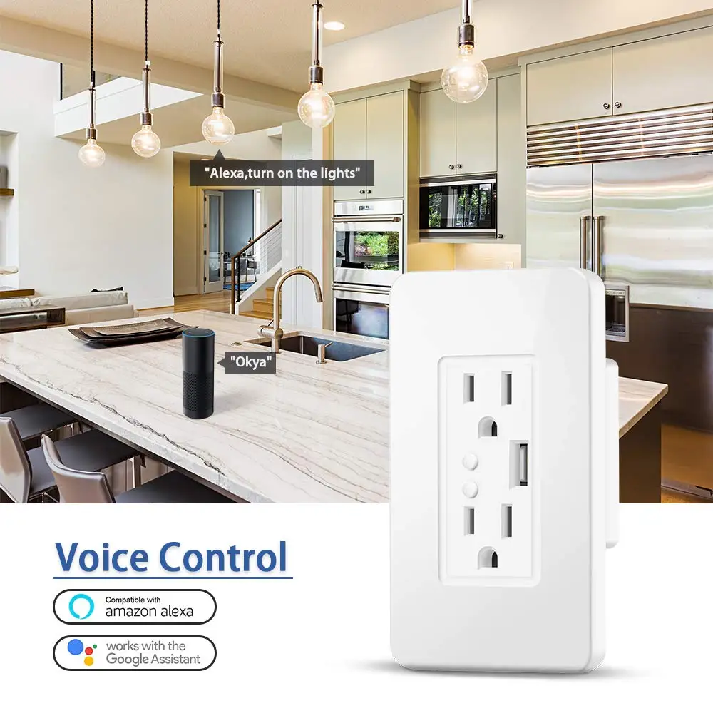 Intelligens Wifi Fali Aljzatok Amerikai Elektromos Dugók Usb Töltővel 15A Független Kapcsoló Távirányítója Alexa Google Home