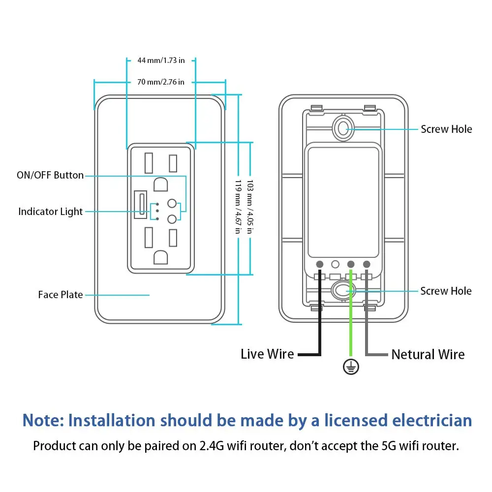 - Standard: Smart WiFi Wall Outlet US Plug Sockets