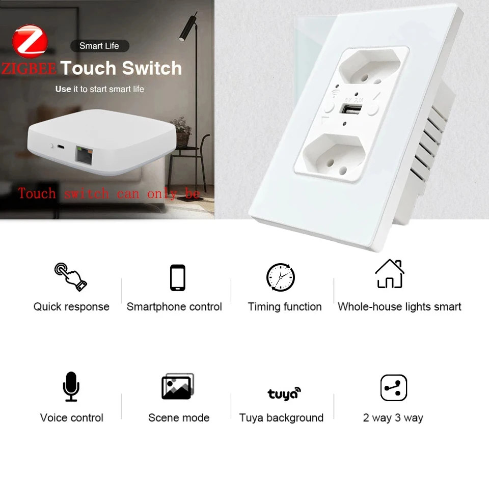 Intelligens Zigbee Tuya Brazil Fali Aljzat Tomada Usb Elektromos Dugó Kimeneti Üvegpanel Távoli Alexa Google Otthoni Átjáró Hub Szükséges