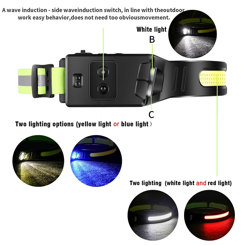 Kdulit Érzékelő Cob Led Fényszóró Usb Újratölthető Hordozható Zseblámpa Beépített Akkumulátorba Működő Kemping Fáklya Fény
