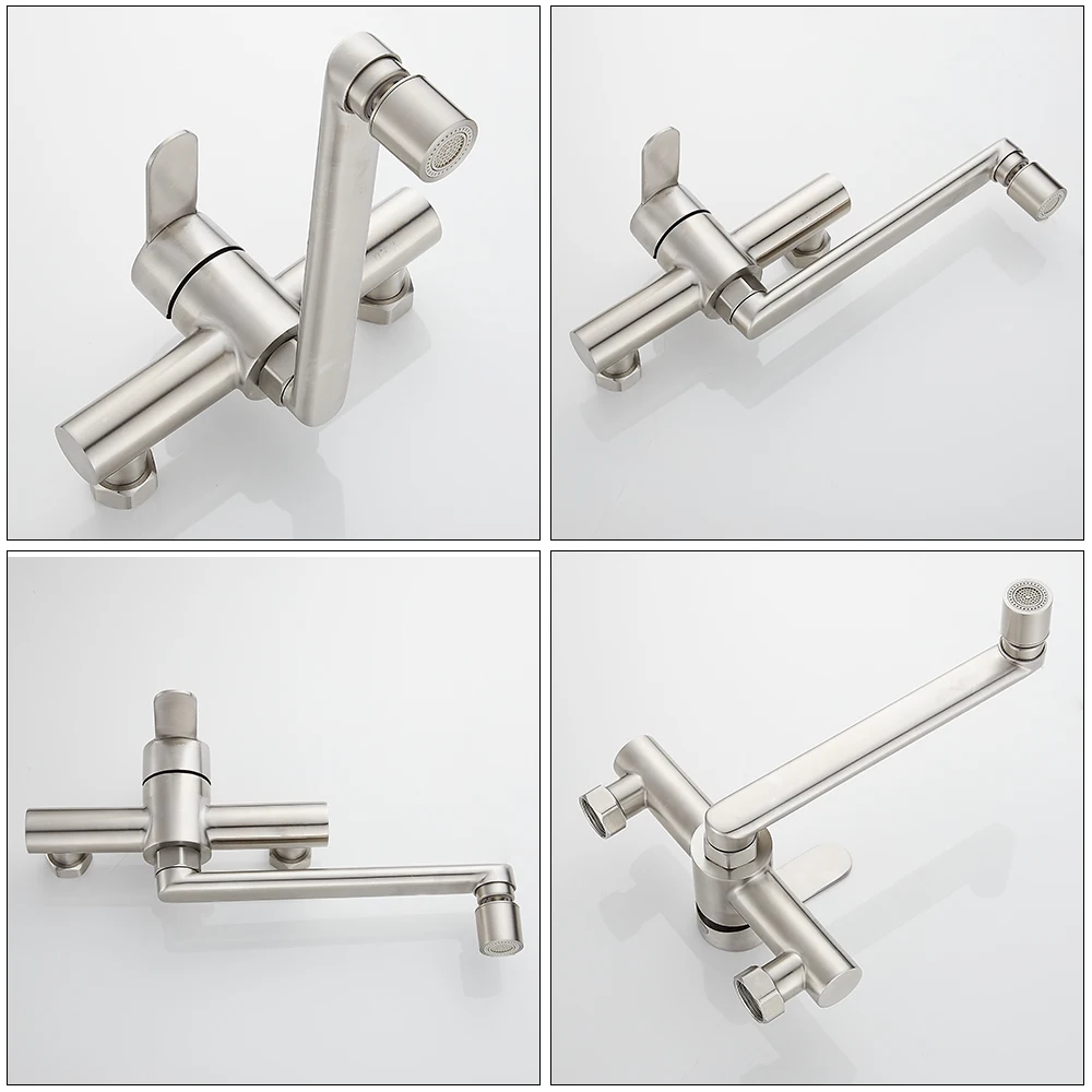 Kitchen Faucet Wall Mounted Rotable Kitchen Sink Tap Dual Hole Single Handle Cold and Hot Water Mixer Kitchen Sink Faucet