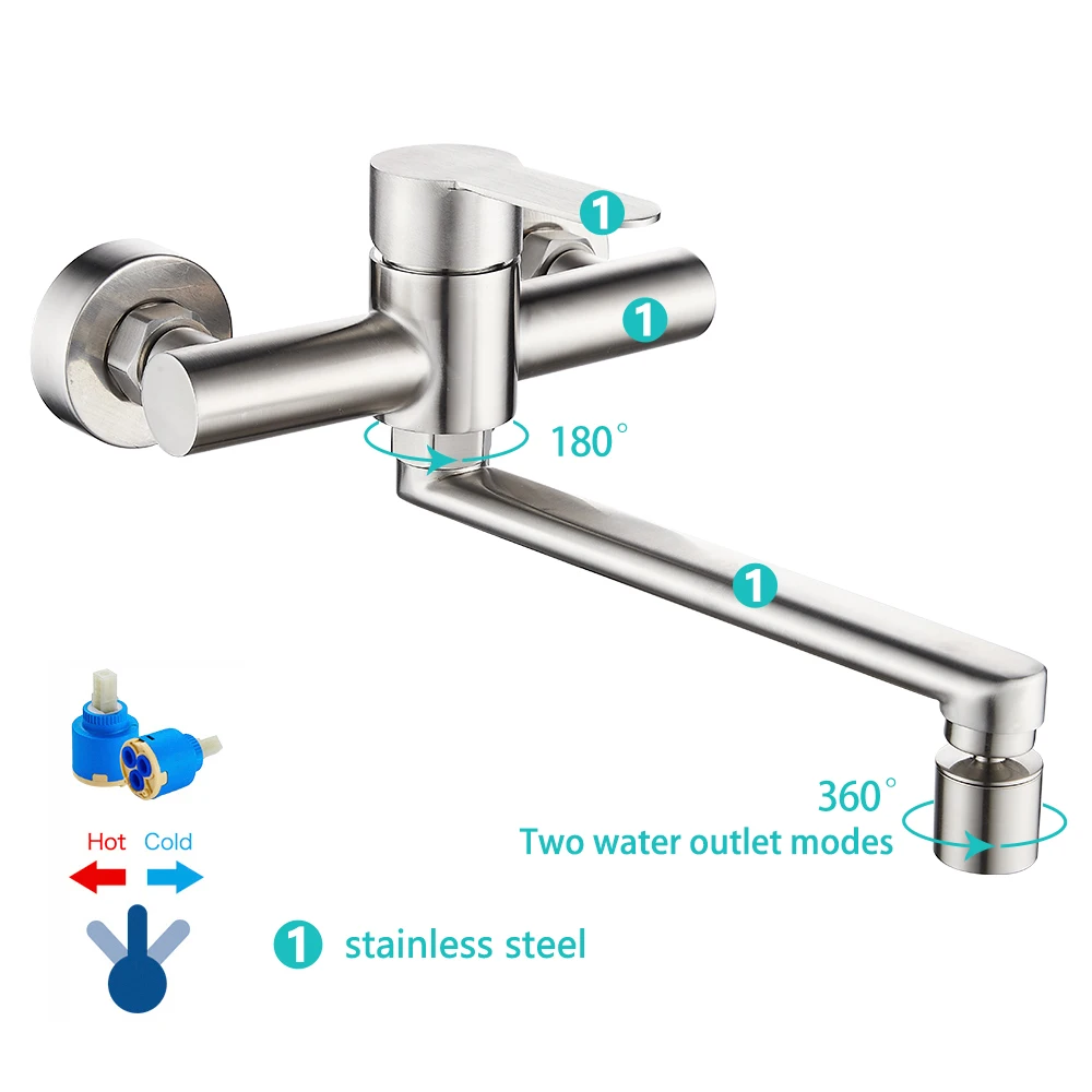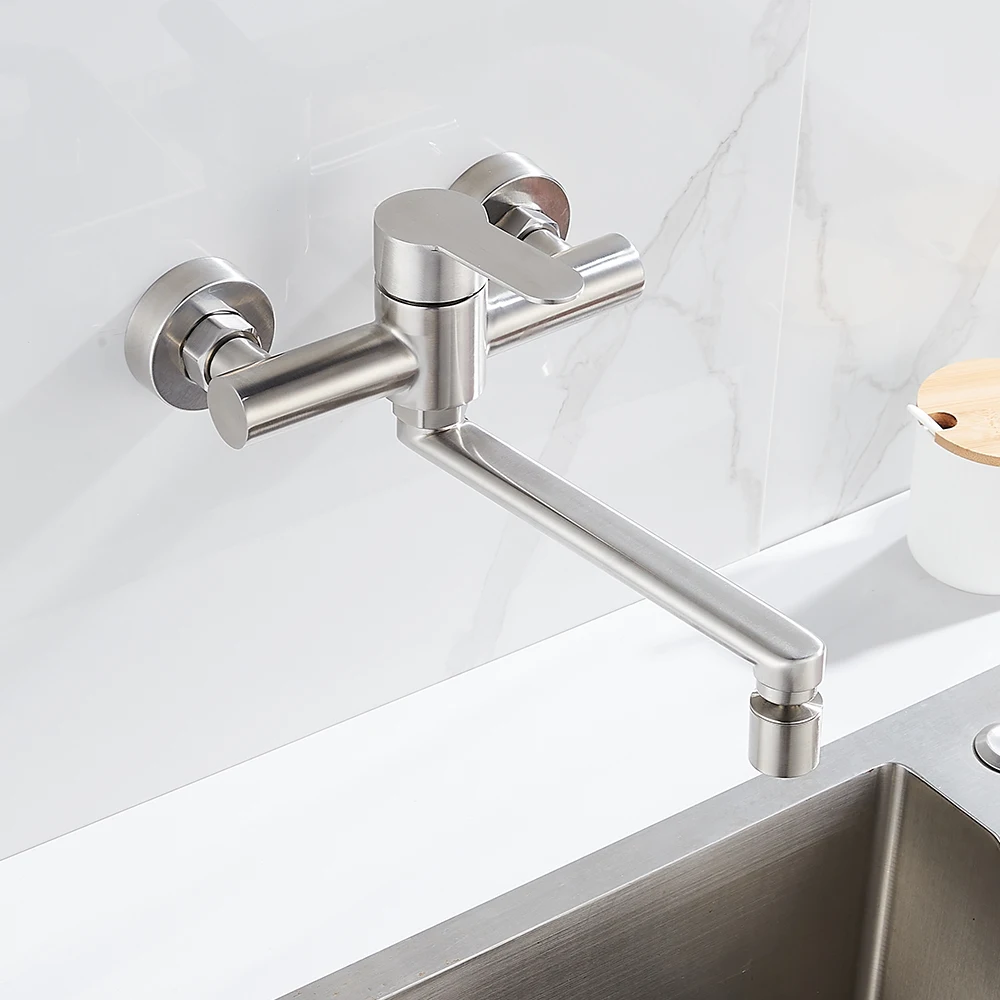 Konyhai Csaptelep Falra Szerelt Forgatható Mosogató Csapdabinikus Lyukú Egyfogantyú Hideg És Melegvíz -Keverő Konyha