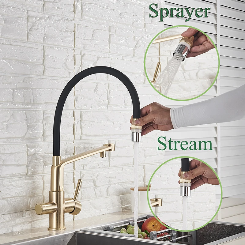 Konyhai Csaptelep Rugalmas Forgatott 360 ° Szűrő Ivóvíz Csaptelepek Daru Forgása Kettős Kifolyó Kettős Fogantyúk Keverő Tiszta Vízcsapok